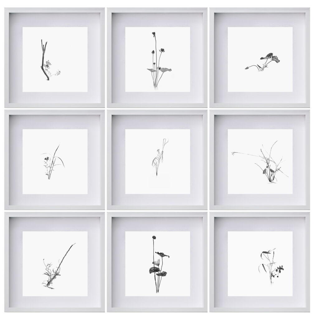 In this series, the artist embarks on a journey to unveil the intrinsic value of nature, contrasting the enduring nature of stone with the ephemeral beauty of ever-changing plants. The stones, born and evolving over time, starkly contrast with the fleeting grace of the plants. Personally arranging and photographing wild plants on blocks of ice, the artist overlays them with images of meticulously placed glass shards. This technique encapsulates the transient nature and beauty of the moment within the layers, portraying a delicate yet breathtaking instance in time. Against the backdrop of a winter snowy landscape, rocks and snow become the focal points of a minimalist composition, capturing the serene world of rocks, snow, and flowing river water. Through this visual exploration, the artist not only captures the profound beauty of nature but also contemplates the fragility inherent in each moment, seeking to express the preciousness of the natural world.